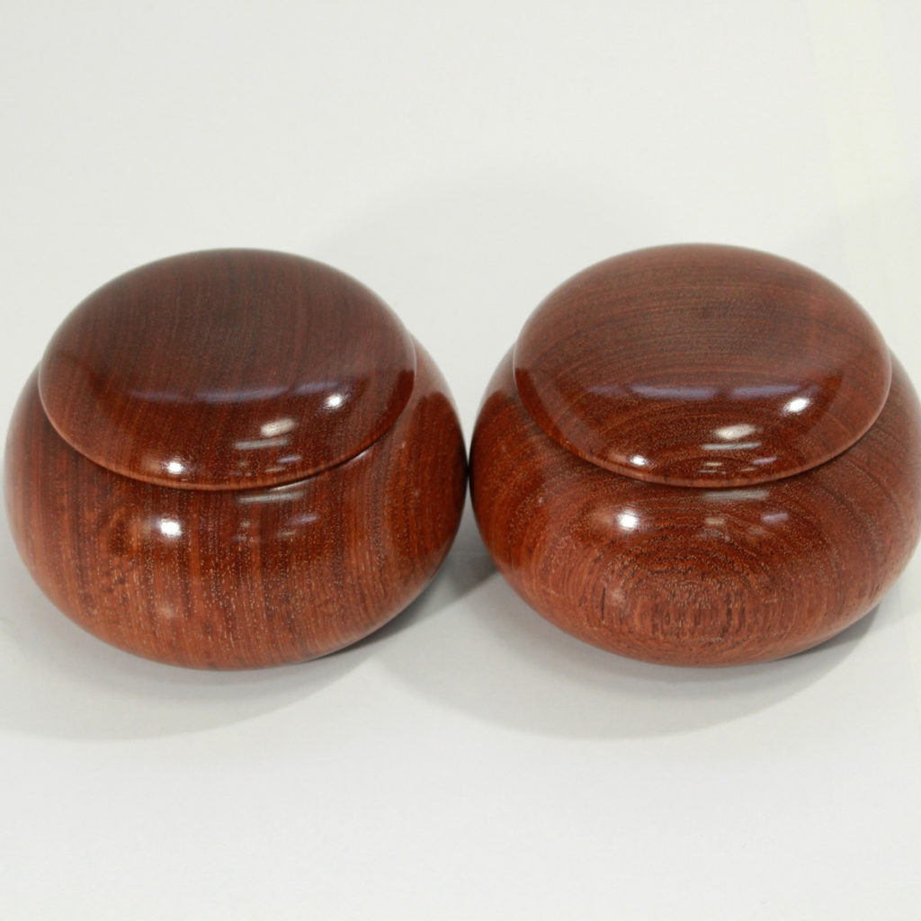 碁器 本花梨 超特大 カリンはとても木肌の美しい表面・綺麗な光沢 タイ、ミャンマー、インド、インドネシア、マレーなどの主に東南アジア地域に生育 カリンは一般的に赤みがかった材ですが、産地によっては赤色のものもあります。カリンの木材はとても木肌の美しい表面を持ち、綺麗な光沢が見られます。体積当たりの密度が高いので、非常に硬く、丈夫という特徴を持ちます。 碁石の白石を入れた時の色のコントラストが美しく女性にも大人気。 超特大 40号(厚さ約11.5mm)まで入ります 標準小売価格40,700円 特別価格 33,000円(税込)