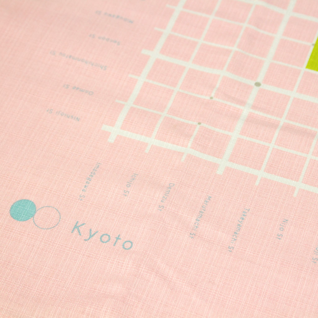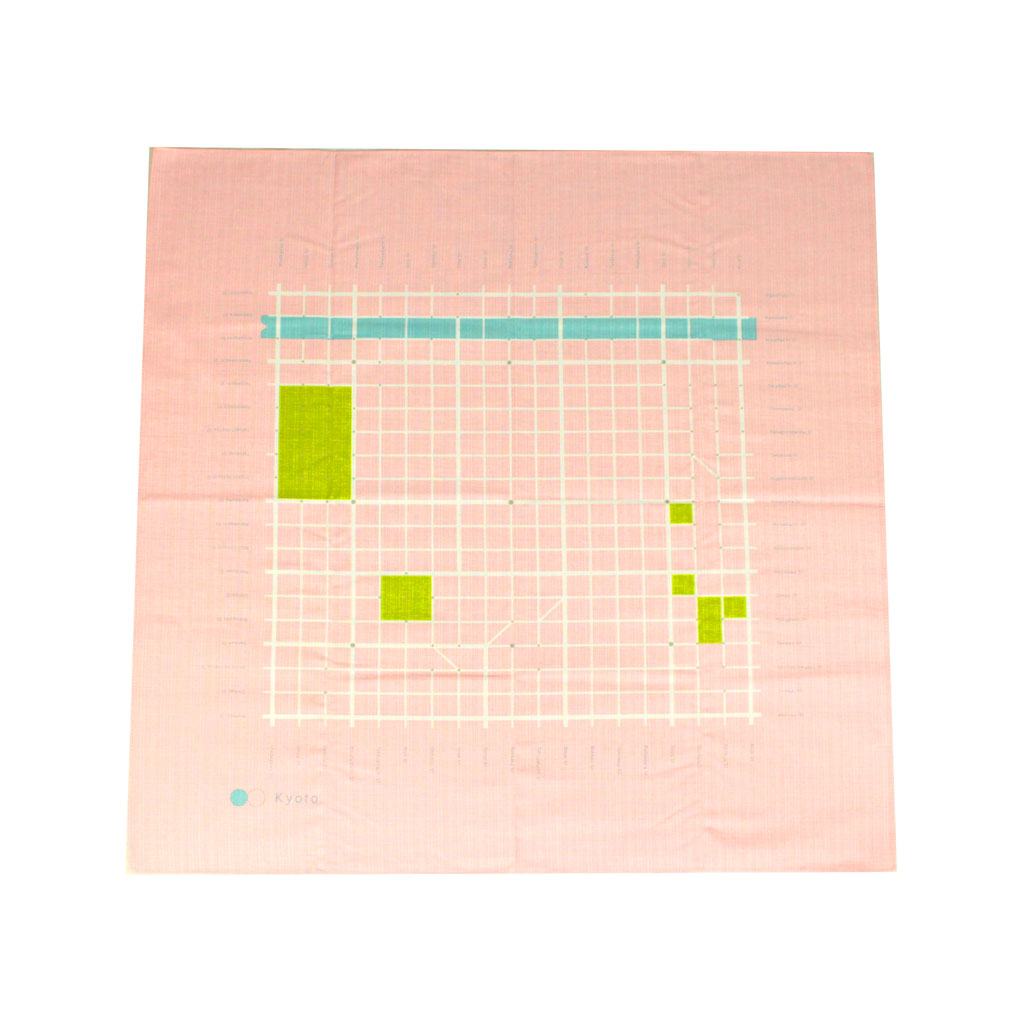 しっかりした綿素材の風呂敷に、京都の通りは碁盤の目になっているのを利用して、囲碁が打てるというユニークな商品です。